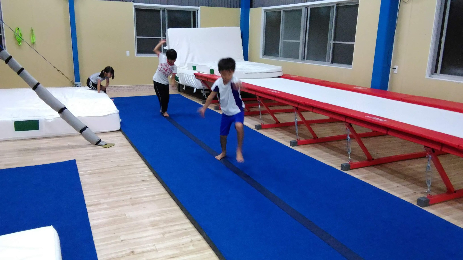 教育学部で生涯スポーツ専攻を学んでいる元国体選手でもある講師が、幼児や小学生・中学生を中心に基礎から体づくりをサポートし、お子様とご家族の方々が一緒に笑顔になれる教室を開催しています。倉庫をリノベーションした施設には、マットや跳び箱、高鉄棒、トランポリンまで、本格的な運動器具を揃えて、様々な体験ができる環境をつくっています。